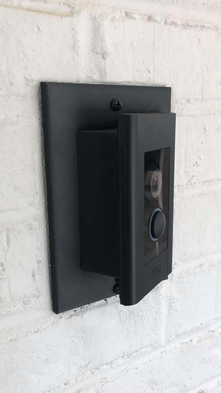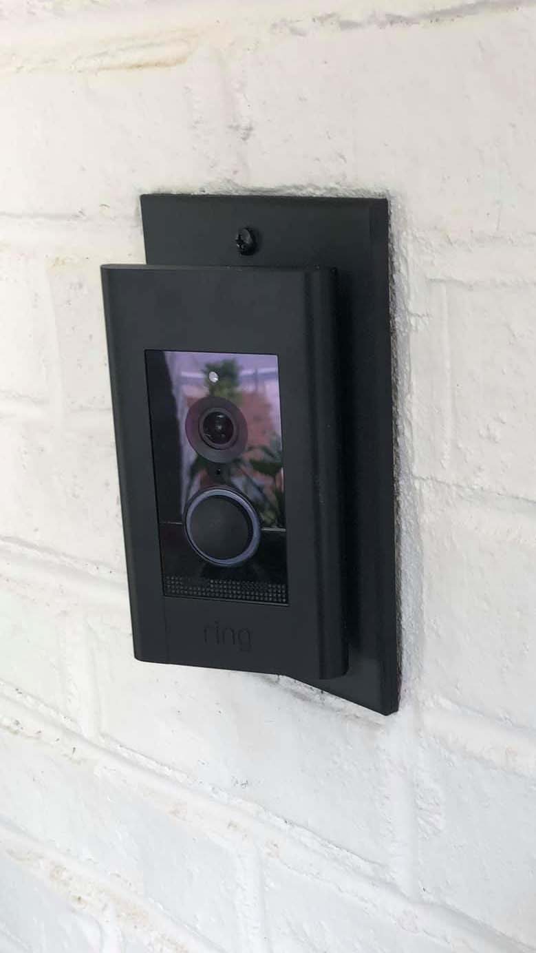 Sure there are a ton of angle mounts available for Ring doorbell products. There aren’t so many designed to replace old intercom units though. We needed something elegant, strong, angled, and quick. Enter a couple of highly skilled and motivated Langston Creative Systems Technicians. They were quick to take measurements and mockup the ideal angle. (pic 1) and quickly had us a 3d printed solution seen in (pic 2).